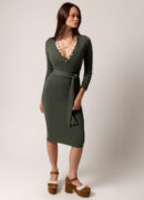 This elegant dress features a low V-shaped neckline that adds a touch of modern sophistication. Real shell buttons down the front give it a natural, elevated detail that feels truly boutique. A detachable belt with thread belt loops on both side seams allows you to define the waist for a flattering silhouette. The double needle coverstitch on the hem ensures a clean, polished finish built to last. Perfect for both casual outings and dressier occasions, this versatile dress is a timeless addition to any women’s boutique collection.